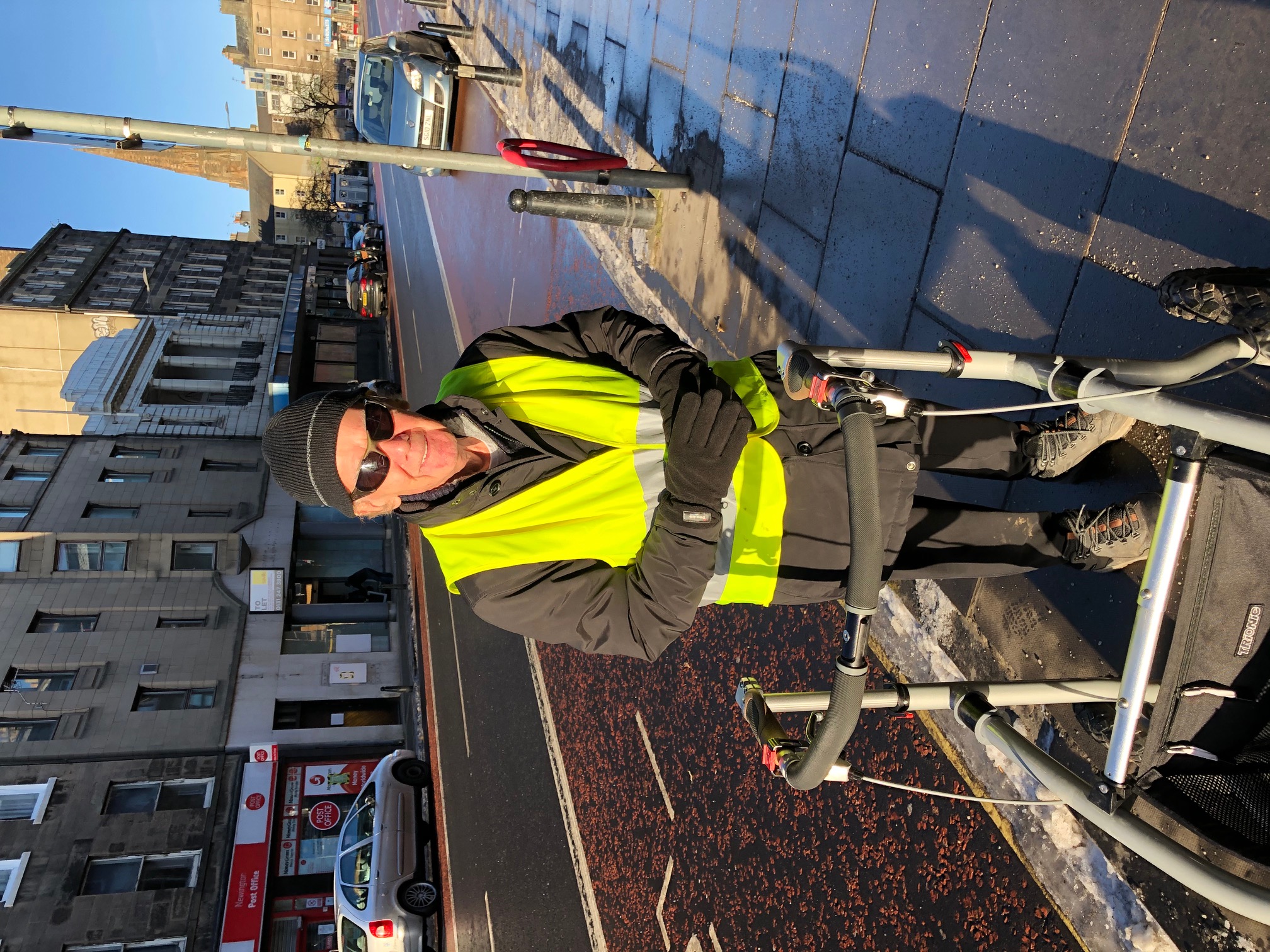 Ostatnio ma zaburzoną równowagę. Nie może odpychać się palcami u stóp tak jak kiedyś. Potrzebuje pomocy przy chodzeniu. Gdy jej chód i techniki uległy zmianie, zaczęła się dostosowywać. Najpierw kijki trekkingowe pomagały jej utrzymać równowagę. Gdy zaczęło jej brakować, wypróbowała chodzik dla dzieci swojej córki, ale nie dawała sobie rady ze wzniesieniami. Potrzebowała bardziej zaawansowanego chodzika, poza standardowymi dostępnymi w Stanach Zjednoczonych.