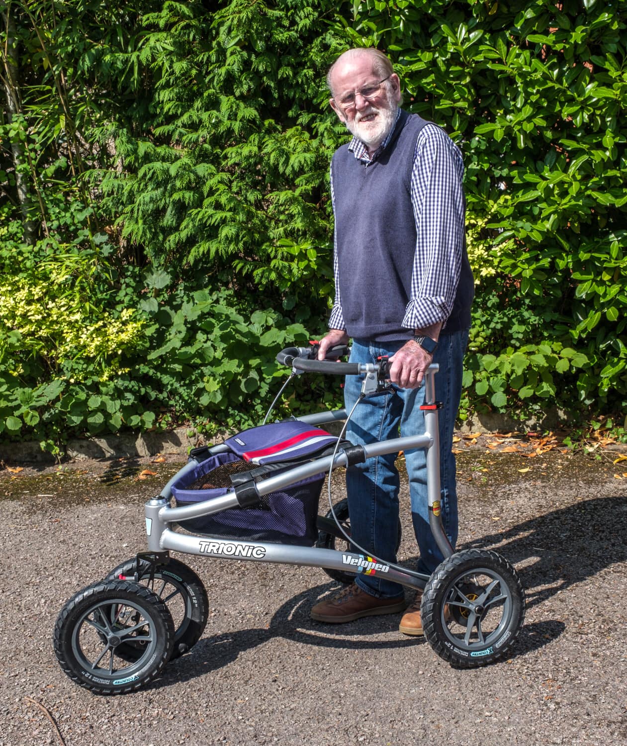 Przeprowadziłam wiele badań na temat chodzików, ponieważ mam wiele niepełnosprawności, a moim podstawowym schorzeniem jest HMS. Mam też teraz pewne problemy poznawcze, a także problemy z równowagą, a moje wizyty u specjalisty są dopiero w 2022 roku. Niektóre z moich problemów z równowagą, takie jak przechylanie się na boki, a biorąc pod uwagę mój wzrost, 178 cm, mogą być bardzo niepokojące. Chociaż Veloped dzięki swojej wadze unosi jedną stronę wraz ze mną nad ziemię, nie wylądowałam na boku ani nawet nie uderzyłam o ziemię. Pomimo swojej wagi, łatwo się go prowadzi, a biorąc pod uwagę bardzo nierówne/wyboiste ścieżki w mojej okolicy, ten chodzik doskonale sobie z nimi radzi, zapobiegając utknięciu na krawężnikach, podniesionych płytach chodnikowych itp. Mogę bezpiecznie wyprowadzać psa i mam wsparcie, które pomaga mi w przypadku nadruchomych stawów, artretyzmu, zawrotów głowy, zwichnięć i innych dolegliwości, z którymi boryka się moje ciało. Ten chodzik pozbawił mnie lęku przed przebywaniem na zewnątrz i korzystaniem z laski, która dawała mi tylko jeden punkt obrotu, gdy staw odmówił posłuszeństwa lub dopadały mnie zawroty głowy.