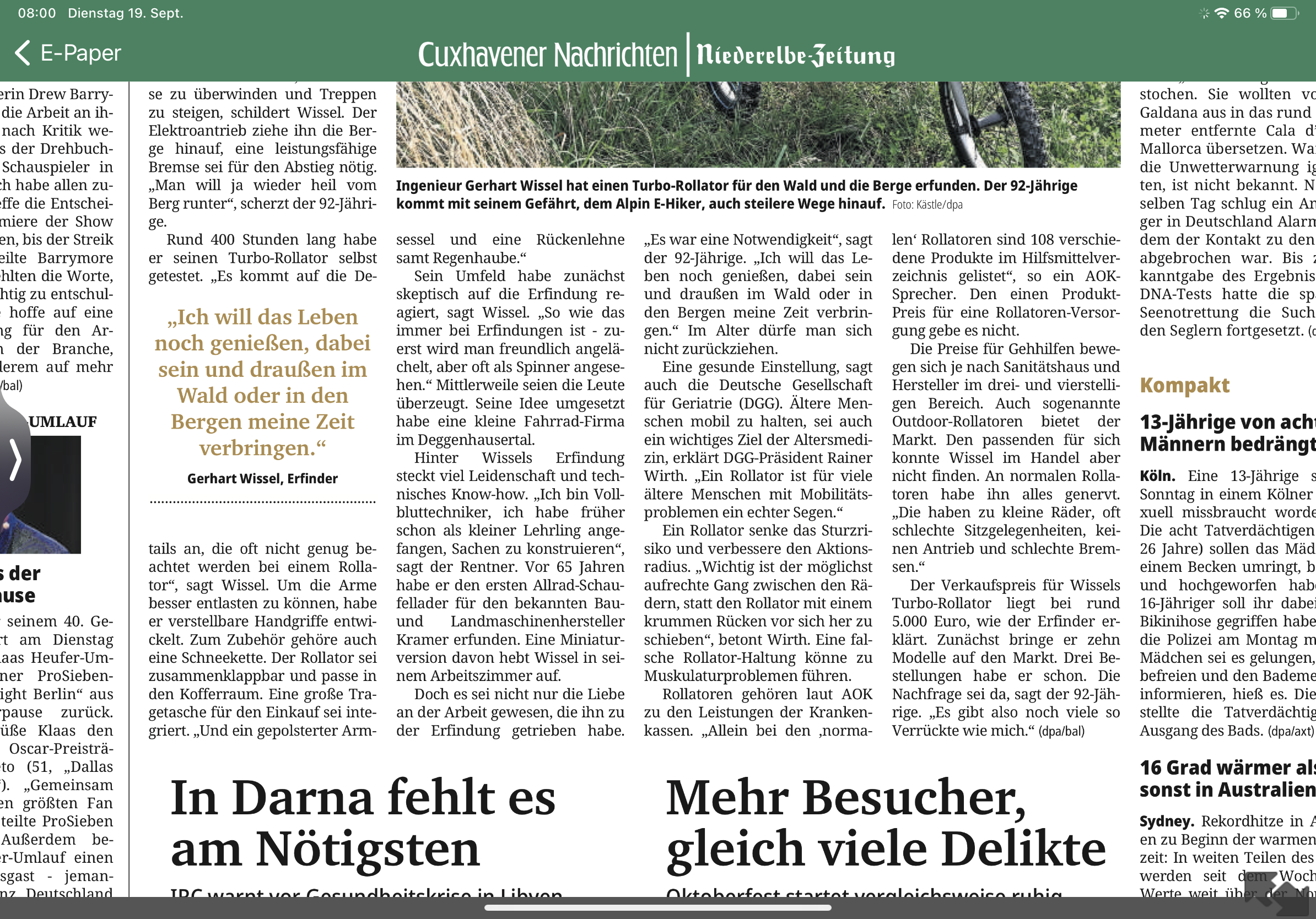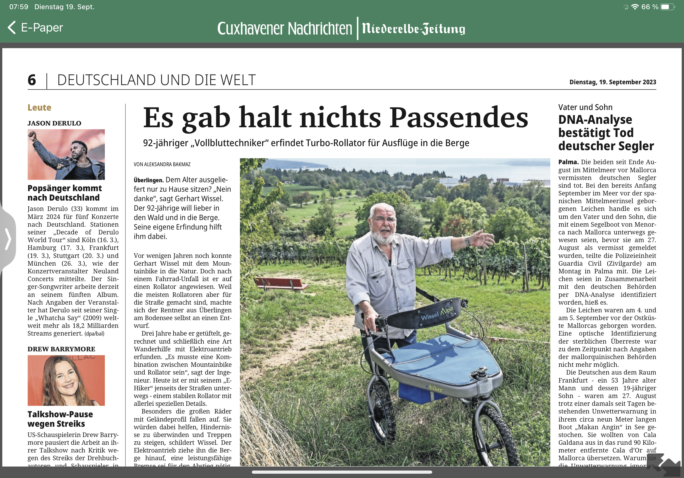 Od czasu operacji usunięcia guza z rdzenia kręgowego mogę chodzić tylko o dwóch kulach, a to powolny i bolesny proces. W końcu usłyszałem o chodzikach, ale wydały mi się słabe i nieatrakcyjne. Marzyłem o spacerach po plaży albo po brukowanych ulicach miasta. Po przeszukaniu internetu natknąłem się na Trionic Veloped i bez wahania zamówiłem jeden. To najlepszy zakup, jakiego kiedykolwiek dokonałem. Mogę teraz chodzić dalej i trochę szybciej, pewniej i bez strachu przed upadkiem. Świat znów się otworzył. Gorąco polecam Trionic Veloped.
