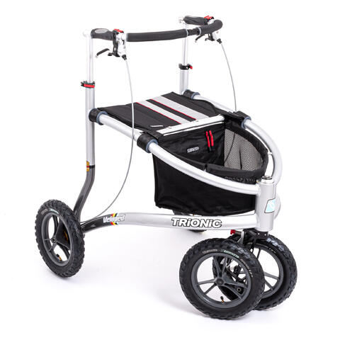 通过使用独特、以及具有专利的 Trionic 爬行脚轮,您可以在无需提高 Veloped 助行车的情形下轻松通过高达 13 厘米的路边石、石头以及树根等较高障碍物。